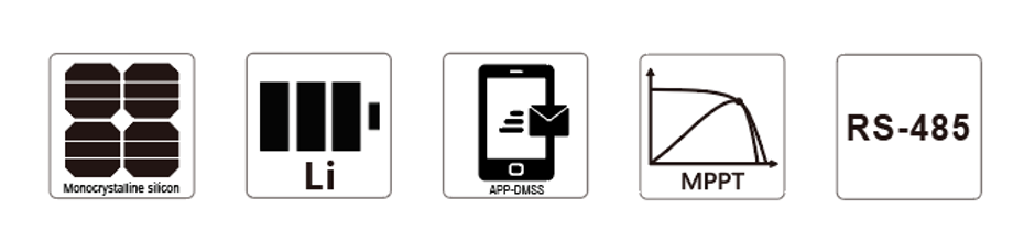 Compact, embedded structure with solar panel, lithium battery pack and charging controller to enhance the system's appearance, installation, and maintenance.